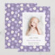 Cute simple purple floral baby birth announcement template card featuring pastel purple and white daisy floral flowers on navy background on the front. 1 picture of your newborn that can be added on this card (front). Perfect card to announce the arrival of your new baby with his/her birth stats. Great for both baby boy and girl. Perfect for all seasons!