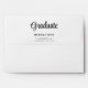 Elegant graduation envelope with personalized return address and a pattern of mathematical formulas in the inside of the flap over a purple background. Add your own information on the envelope. Perfect for high school and college graduates. Illustrated and designed by Patricia Alvarez.
