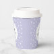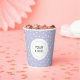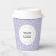 This minimal paper cup features a simple logo and brush confetti pattern on a purple background. Add your logo and customise the text with your information. You can use this personalised cup at your business place, shops, company event or, etc.
