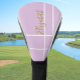 This simple purple and white personalised golf club head cover has minimalist solid colour blocks and a gold editable name for the lady golfer in your life. Give one to your mum, sister, or anyone else who you want to give a little present that relates to their hobby, or get one for yourself. Cute and useful, too!