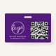 Custom ID name badge in a horizontal layout with your logo and QR code. Use the template to add each employee name and title. The backside has your contact information and instructions for returning if found. This simple yet professional design features all text in white over a royal purple background and may be changed to any colour you wish by clicking the "customise" button. This corporate style ID badge may be personalised for any type of business big or small.