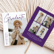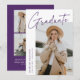 Modern graduation announcement card featuring one of the graduate's photos on the front with "Graduate" in a purple handwritten script with a white background. Personalise with the graduate's name, school name, and graduation year. The minimalist graduation announcement reverses to display 4 photos in a grid-style layout with the graduate's future plans or other custom text shown below. The 5 photo graduation announcement is perfect for both high school and college graduates.