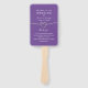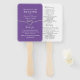 Modern, minimalist, elegant, simple calligraphy purple wedding program hand fans with silver rope heart.