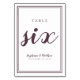 This custom design was created for smaller intimate wedding celebrations. Simple, minimalist and elegant Wedding Table Number SIX design features a contemporary design with a double frame border in purple on a crisp white background. The chic design provides timeless yet modern sophistication.   Personalise wedding table design with your wedding details in purple cassis lettering and script. The back of the card is a duplicate of the front. Order one for every table with the individual table numbers.