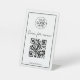 The graceful script font gives this sign a soft, romantic aesthetic, balanced by a clean layout that keeps your QR code clear and scannable. At the top, you can customise your business logo or monogram, while the bottom includes space for your website or social handles, creating a cohesive and polished look.