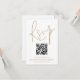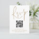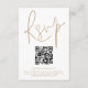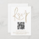 Simple QR Code Gold Script Wedding RSVP Card. A convenient option enclosure to ask your guests to scan your QR code to your wedding website to RSVP. A stylish set typography in gold for the main heading RSVP complementing the rest of the text which you can easily personalise.