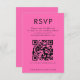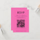 Simple QR Code Hot Pink Wedding RSVP. Printable or printed.. Simple QR Code Wedding RSVP enclosure making it convenient for your guests to reply by scaning your QR code leading to your wedding website. Fully customisable typographical design in trendy hot pink. Easily personalise the words to your own. Your QR code will be automatically generated to update the sample code in the design, when you simply change the sample URL in the template with your own wedding website URL. You can also change text and background colours if you wish via the customise further option to match your wedding colour theme. If you need any assistance with this please message me.