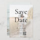 Capture the essence of your upcoming special day with our 'Save the Date' wedding card. This card features a full-size photo on the front, creating a personal and intimate preview of your wedding. Overlaying your chosen image is the beautifully crafted heading "Save the Date" – 'Save' in an elegant, classic script that adds a touch of romance, and 'The Date' in a sophisticated serif font, striking a perfect balance between classic and contemporary. The additional details are thoughtfully presented in a clear serif font, harmonizing style with readability. Flip to the back of the card to find space for another cherished photo, accompanied by further information about your wedding. This card isn't just an announcement; it's a keepsake, a prelude to your joyous celebration, designed to be treasured by you and your guests.