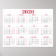 Simple and modern 2026 calendar poster featuring bold red and black accents on a clean white background. Customize easily by selecting your preferred background color before checkout.