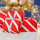 This Christmas wrapping paper has red and white stripes. Diagonal stripes make up the simple pattern.