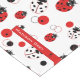 Simple and elegant pattern featuring ladybugs clipart in red, black and white colour with circles and dots in red and black and a personalised name label.