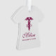 A personalised ornament for a registered nurse with a stylish red caduceus symbol with the letters R N on either side.