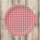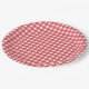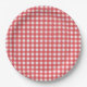 This fun and whimsical design features a picnic red country gingham party, summer plaid chequered casual retro, cookout bbq barbeque barbecue, minimalist simple red check pattern, cute backyard outdoor party supplies, rustic-chic whimsical paper plate, red and white summer decor, vintage food tablecloth style, simple red gingham paper plate, matching hamburger hotdog cookout