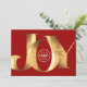 Simple Red & Gold Joy Business Logo Happy Holidays Holiday Card! This is a beautiful holiday card idea for your business to send out during the holiday season. The design is simple but elegant, featuring the "Joy" text with a faux gold digital effect. Perfect to show your appreciation to your customers and partners this Christmas holiday. You can add your logo.