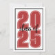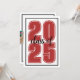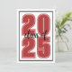 Timeless Vertical Graduation Announcement & Party Invitation. The front features the year "2025" in large bold font, with "class of" elegantly written in script across the middle. This version showcases a striking red, black, and white colour scheme, but all colours—including the year, script text, and frame—can be customised to match school colours or personal preferences. The background colour can also be adjusted for a personalised touch.