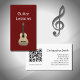 Simple Music Teacher business card, with a guitar image with a red background. With white and black lettering, you add your own information. You also add your website to the QR code field. Great for spreading the word about your performing or guitar lessons business!