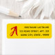 This simple address label design features a customisable red monogram letter on a yellow background. The personalised contact info is in black text.