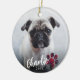 Simple Red Plaid Paw Script Photo Pet Christmas Ceramic Tree Decoration
