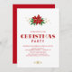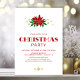 Share the joy and invite your friends and loved ones to your Christmas celebration with this simple yet stylish white with red text and a red poinsettia Christmas party invitation.