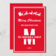 Simple Red White Monogram Family Name Christmas Holiday Card