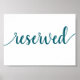 Simple Reserved | Teal Aqua Any Party Event Table Poster