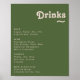Simple Retro Olive Green Wedding Drinks Menu Sign