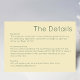 These wedding details cards are a quality product and I am highly satisfied with the work that was done. 10/10 would recommend. .
