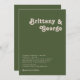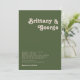 This simple retro vibes olive green wedding invitation is perfect for your classic funky vintage earth tones wedding. The design features a minimalist hippie rustic boho font. The neutral southwest desert colour palette and earthy bohemian mid-century lettering combine for a perfect, minimal modern western destination design. Feel free to change the colour add your own artwork, graphics, or photos. If you have any questions about the design of this product, please feel free to reach out to us!