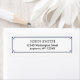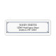 A sophisticated, customisable return address label on a white background with a black and blue mansard border.