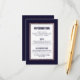 Modern, simple, and elegant faux printed rose gold pinstripe outline on navy blue and white, Wedding information details card. This classic and sophisticated design is perfect for the classy, stylish, and trendy graduate. Personalise with your own message on the front and a customised monogram initial on the back. All photo print design.