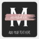 Simple Rose Gold Paint Business Monogram Black Square Sticker
