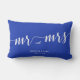Simple Mr. and Mrs. royal blue and white lumbar wedding pillows with customisable text - you can add bride's and groom's name and wedding date
