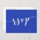 Custom simple royal blue wedding RSVP postcards with customisable text