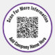 You can replace the website url for your QR code. There are two lines of black display text that you can edit to show a custom message. These stickers have black text in a white circle. The border is royal purple.