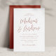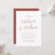 Minimalist wedding invitations featuring your names displayed in a simple rust script with your wedding details shown below. The invite reverses to a solid rust background.