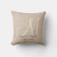 Simple Rustic Beige Burlap Monogrammed Cushion