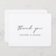 This simple rustic thank you card features 'thank you' in a chic modern script and it works wonderfully with a variety of occasions! This element of the design cannot be altered. You can change the colour or font or size of any of the other text. We've chosen black as the default setting for all of the text on both sides. We've put some placeholder text on the back for you to replace with your message. But please don't feel restricted by this. If you prefer to make the back blank so that you can write a handwritten note on each card instead, you can do that. Just please be sure in any case to delete our sample/placeholder text on both sides! We have not picked a default colour for the background on either side. Instead, the default is set to simply be the paper itself as a base colour. And we have chosen kraft paper as the default paper type in order to enhance this design's earthy, rustic flair. You can of course change the paper type if you prefer a different look. We've chosen rounded edges to show here, but you can change this to sharp corners or perhaps another shape according to your taste. We hope you'll enjoy experimenting with various aspects of this card's appearance and make it uniquely yours with the intuitive design tools and your inspiration! And please check our wedding thank you card collection to see this and other simply chic designs, including this design with 'love and thanks' on the front.