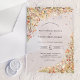 This Simple Rustic Fall Wedding Acrylic Invitations design features a timeless neutral base palette of beige and gold on clear acrylic backgrounds with delicately muted colourful embellishments of golden branches and lovely autumn florals with softly falling leaves in red, copper, dusty rose, burnt orange, terracotta, and the full fall colour flourish. These botanical elements are paired with simple traditional minimal black typography to create a presentation that is polished with a delightful touch of whimsy. This design suite offers a range of formal to casual, minimalist to maximalist, in beautiful mix-and-match options for easily curating your perfect wedding suite or event decor in the stunning regalia of fall. As with all of our designs, if you have any questions or special requests, please reach out to us; we would love to help bring your vision to life.