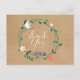 Simple rustic kraft fresh spring floral garland business thank you postcard, featuring a floral garland of spring flowers framing a beautiful white script thank you message. This elegant design is ideal for a wide range of businesses including spas salons hair and makeup stylists boutiques beauticians and florists.