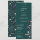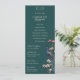 This elegant and simple one-sided Wedding Program features rustic floral hand-drawn illustrations of a blue and teal peacock bird perched on a magnolia tree branch in full bloom, showcasing vibrant cream and blush pink magnolia flowers. The back features an elegant floral and bird pattern with coordinating illustrations, all against an elegant dark teal green background. Customise with your wedding details, including bride and groom monogram, the date, title, order of service and wedding party.