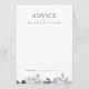 This simple rustic floral wedding advice card is perfect for your elegant vintage spring wedding. It is designed with classic rose flowers, simplistic blush peonies, and dusty purple hydrangeas. All of which is accompanied by touches of green eucalyptus and navy leaves. With all of these light colourful watercolor flowers, you are sure to get the feel you desire.