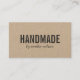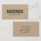 Stylish rustic social media kraft business card with the word "Handmade" in bold font and a stylish script for your name or store name in dark grey. This stylish handmade business card is ideal for crafters and makers of handmade goods, like artists, knitters, dressmakers, etc who want a way to let the people they meet in real life know how to find them and their work/portfolio online and on social media.