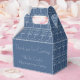 Tiny House Blueprint Drawing Blue and White Housewarming Party Favour Box. All text can be customised. This image is from my original ink on mylar hand drawing of a small rustic cottage with charming architectural details and small stone benches each side of door. I modified the image digitally to look like an antique or vintage blueprint drawing (early to mid 20th century).
