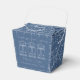 Tiny House Blueprint Drawing Blue and White Housewarming Party Favour Box. All text can be customised. This image is from my original ink on mylar hand drawing of a small rustic cottage with charming architectural details and small stone benches each side of door. I modified the image digitally to look like an antique or vintage blueprint drawing (early to mid 20th century).