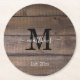 Simple Rustic Monogram Script Family Name Custom Round Paper Coaster