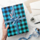 Simple Rustic Teal Blue Black Buffalo Plaid Checks Wrapping Paper