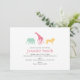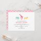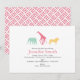 This simple, safari animal baby shower invitation features three silhouettes: elephant, giraffe and lion in a sweet, pastel colour palette. The background is a coordinating pink cross-hatch pattern. Customise the invitation details for your next baby shower.