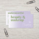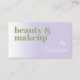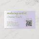 Beautiful elegant minimalist style artistic makeup artist business card. Contemporary light lavender lilac violet coloured business card with a modern retro and minimalist sage green and sophisticated classy white font. Click on 'Personalise' to find the template ready to be customised with your unique business name, profession and contact information, text and QR code of your choice. This particular pretty and unique design was made for those who like sophisticated classic strong designs.