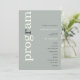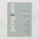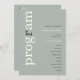 Simple Sage Ivory Text Wedding Program. . A modern typographical design with Program in large typography in Ivory with the ”r” in grey, rotated and to the left hand side on a background of light sage green. Background and text colours can be changed if you wish via Customise further.