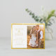 Simple and stylish, this elegant save-the-date wedding announcement postcard features a classy border and elegant calligraphy script pressed in real gold foil with a photo for personalising.